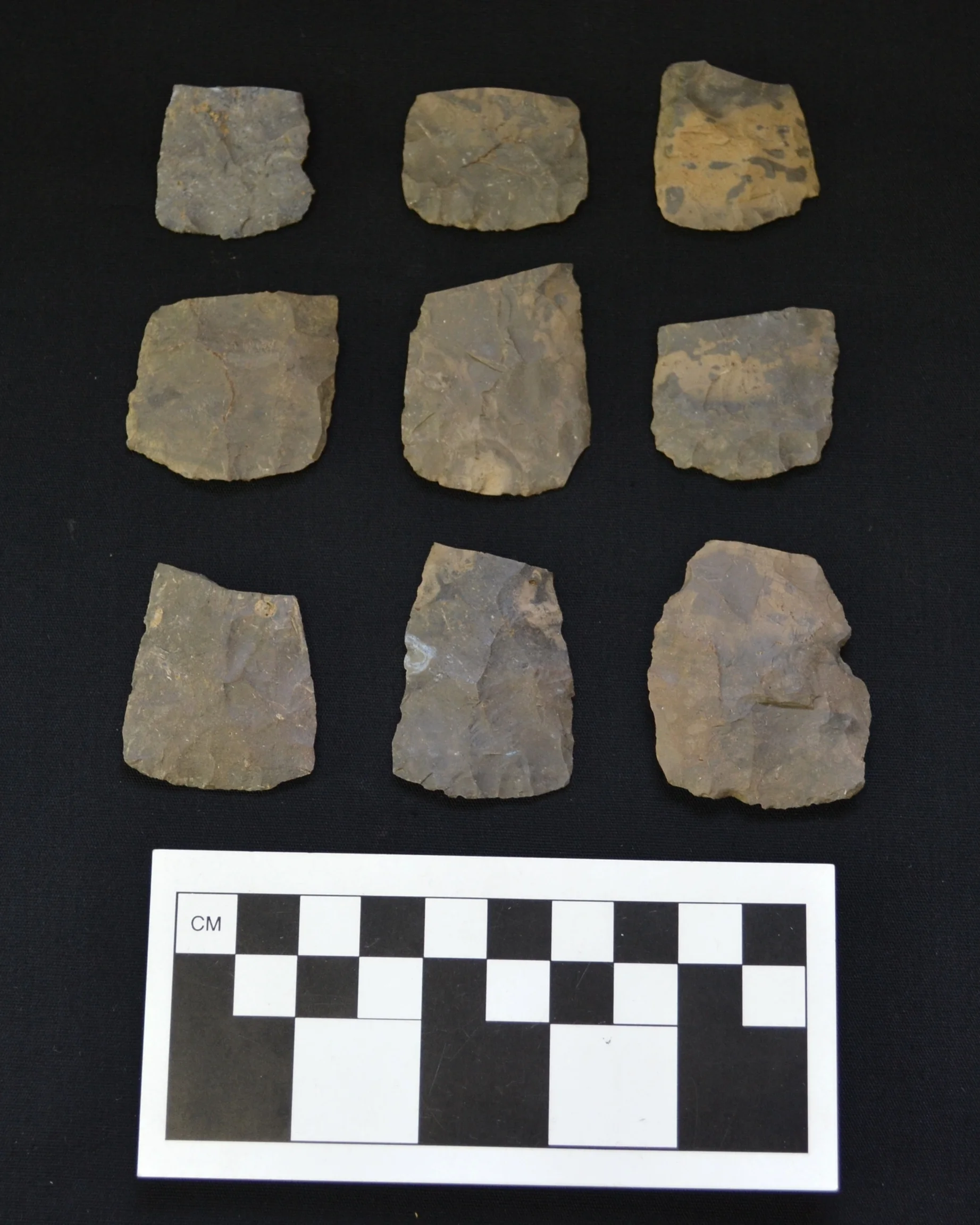 A sample of Onondaga chert, Meadowood cache blade fragments from the Esmond 2 site.